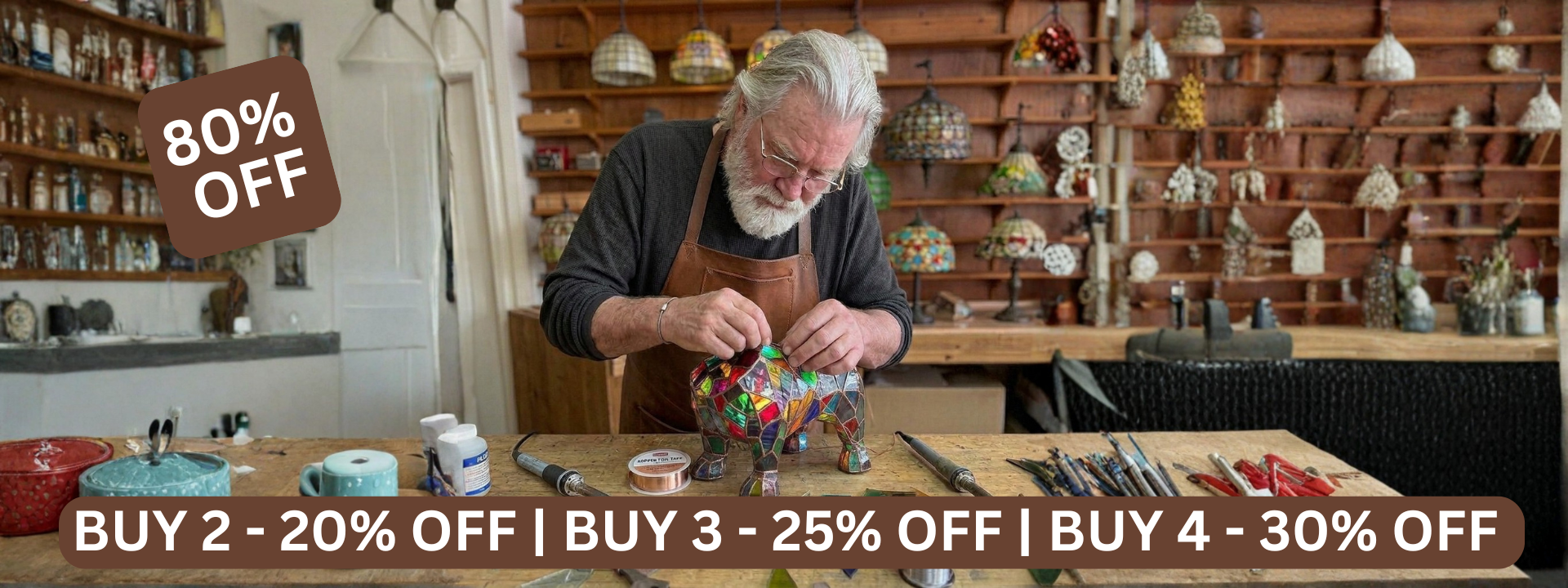 Table Lamp Stained Glass Dog Figurine Accent Light